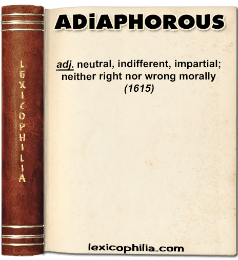 from Greek ἀδιάϕορ-ος (indifferent) + -ous