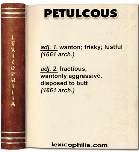 from Latin petulcus (inclined to butt, butting, wanton, frisky);