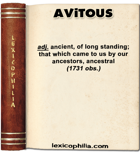 from Latin avītus of or pertaining to the avus (grandfather) + -ous
