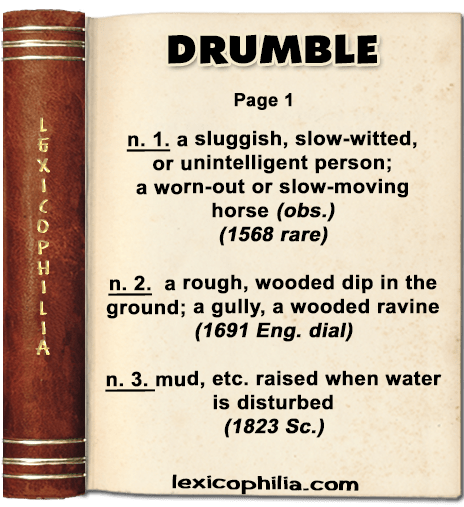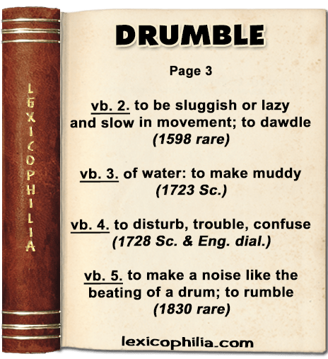 vb. 4.: apparently a nasalized form of drubble (to trouble, disturb), parallel to drumbly, drumly (adj.) from drubly; but possibly a back-formation from the adj.