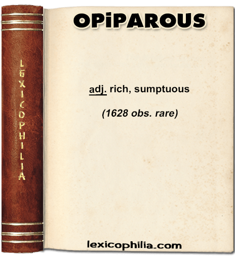 from Latin opiparus (richly furnished, sumptuous),