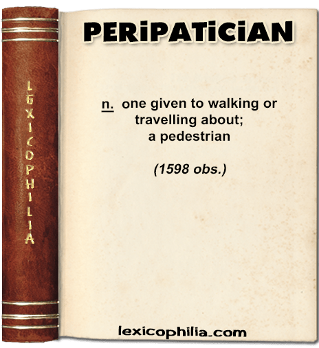 shortened from Middle French peripateticien, from peripateticus (a person who walks about, a traveller; also, moving about from place to place) + French -ien (-ian)