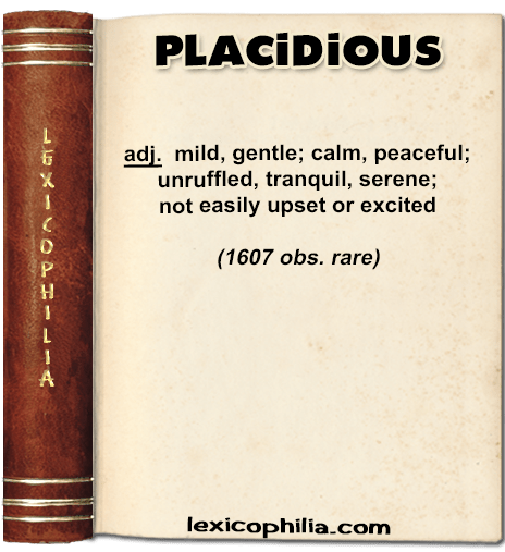 from Latin placidus (pleasing, favourable, gentle, mild, calm),
