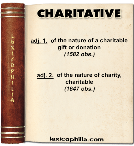 from Old French charitatif, -ive, caritatif, -ive, medieval Latin caritativus (charitable)
