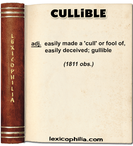 “This adjective, which is presupposed in the derivative cullibility (known 1728), would normally be derived from a verb cull ; but none such is recorded”