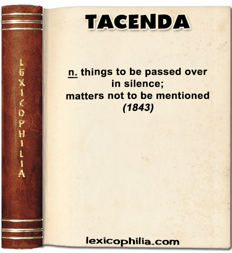 Latin, gerundive neuter pl. of tacere (to be silent)