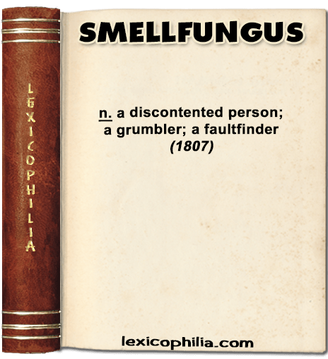 after Smelfungus, a hypercritical traveller in A Sentimental Journey through France and Italy (1768) by Laurence Sterne (died 1768 British novelist), who intended this character to satirize Tobias Smollett (died 1771 British novelist) for his descriptions in Travels through France and Italy (1766)