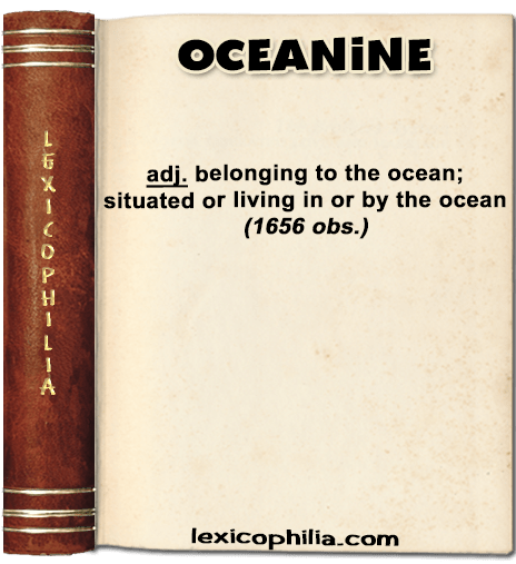 Word of the Day: OCEANINE ETYMOLOGYfrom Latin oceanus + -ine EXAMPLEGulls, petrels, albatrosses, cormorants are all oceanine birds. Share this: Click to email a link to a friend (Opens in new window) Email Click to print (Opens in new window) Print Click to share on Facebook (Opens in new window) Facebook Click to share on Reddit (Opens in new window) Reddit Click to share on Pinterest (Opens in new window) Pinterest Click to share on Tumblr (Opens in new window) Tumblr Click to share on X (Opens in new window) X Click to share on WhatsApp (Opens in new window) WhatsApp Like Loading...