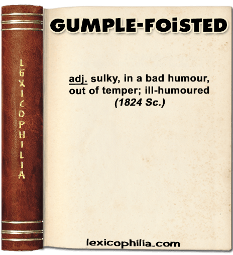 from Scots gumple (to be in a bad mood, to sulk, and as a noun, a fit of the sulks) + feist (found in other formations of similar meaning, e.g. bumple feist (the sulks), amplefeist (a sulky mood)) + -ed
