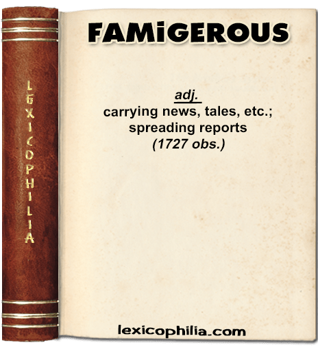 from Latin famigerare; formed on fama (a being much talked about, report) + gerere (to carry)