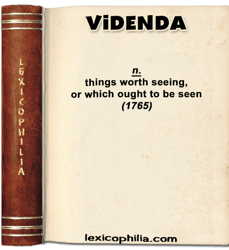 Latin, plural of videndum, from videre (to see)