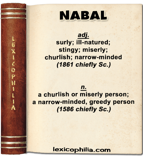 from the Hebrew proper name Nabal (a wealthy sheep owner who refused to pay tribute to King David for protecting his flocks),