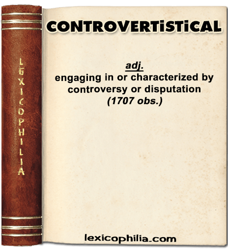 from controvertist (a person who engages in argument or controversy) [from controvertere (in logic, to invert; to argue, to dispute, to oppose)] + ‑ical