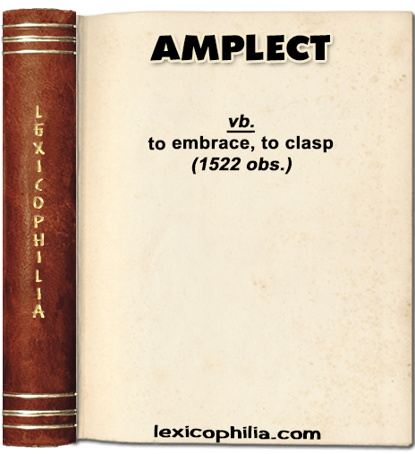 from Latin amplecti (to embrace, clasp), from amb- (about) + plectere (to plait, twine)