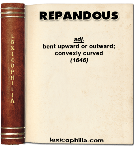 from Latin repandus (bent backwards, turned up), from re- + pandus (bent)