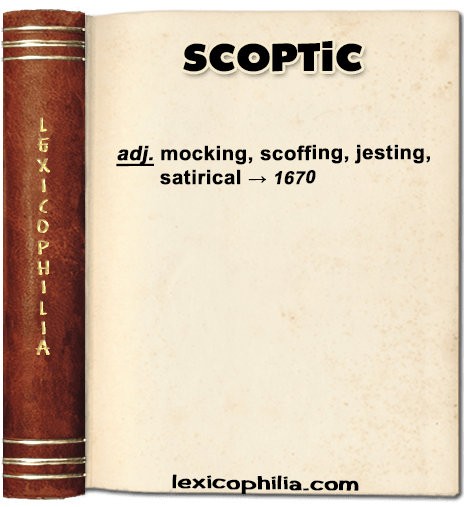 from Greek σκωπτικός, from σκώπτειν (to mock, jeer)
