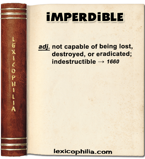 from Latin imperdibilis; from im- + perdere (to lose) + -ibilis (-ible)