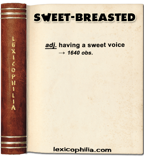 from sweet + breasted (breast = a person’s singing voice, obs.)