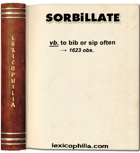 from Latin sorbillat-, past participial stem of sorbillare (to sip)