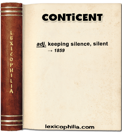 from Latin conticentem, present participle of conticere (to be silent or still),