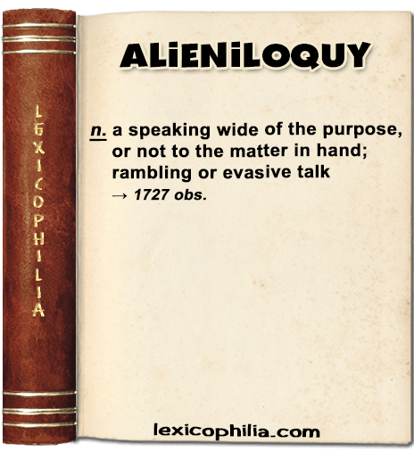 from Latin alieniloquium, from alienus (foreign) + -loquium (from loqui (to speak))