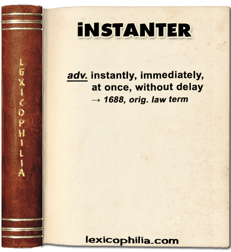 originally a law term, but later a substitute for ‘instantly’