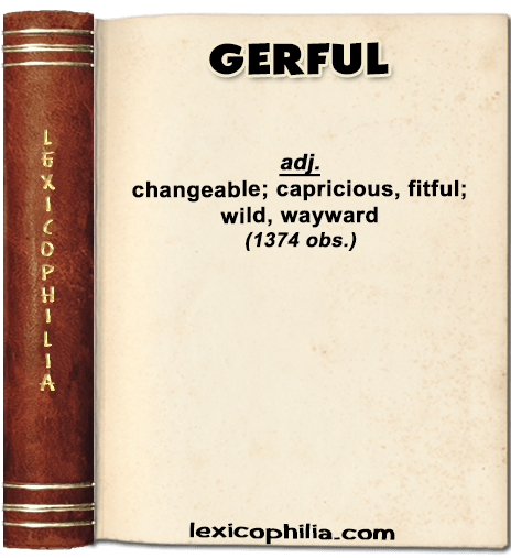 from gere (a wild and changeful mood; a sudden fit of passion or feeling) + -ful