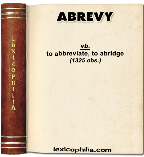 from Middle French abrevier, from Latin abbreviare (to abbreviate, to shorten)